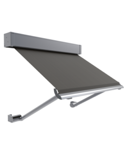 The Veue Pivot Arm system works well with awning windows on the first or second floor. This system keeps windows in the shade without covering them completely. The strong, spring-loaded arm keeps the fabric taut in all positions, giving you full control over how much shade and coverage you want. The Veue Pivot arm system can be controlled by a hand crank or by a motor, giving you a simple point of control for hard-to-reach places.